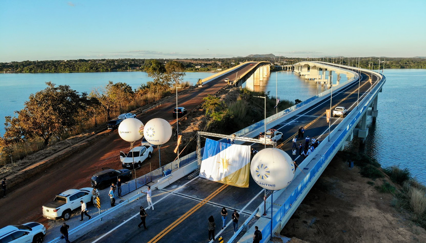 A nova Ponte de Porto Nacional, com 1.488 metros de comprimento, é a maior obra de infraestrutura no estado, eliminando a dependência de balsas e facilitando o transporte regional – Adilvan Nogueira/Governo do Tocantins