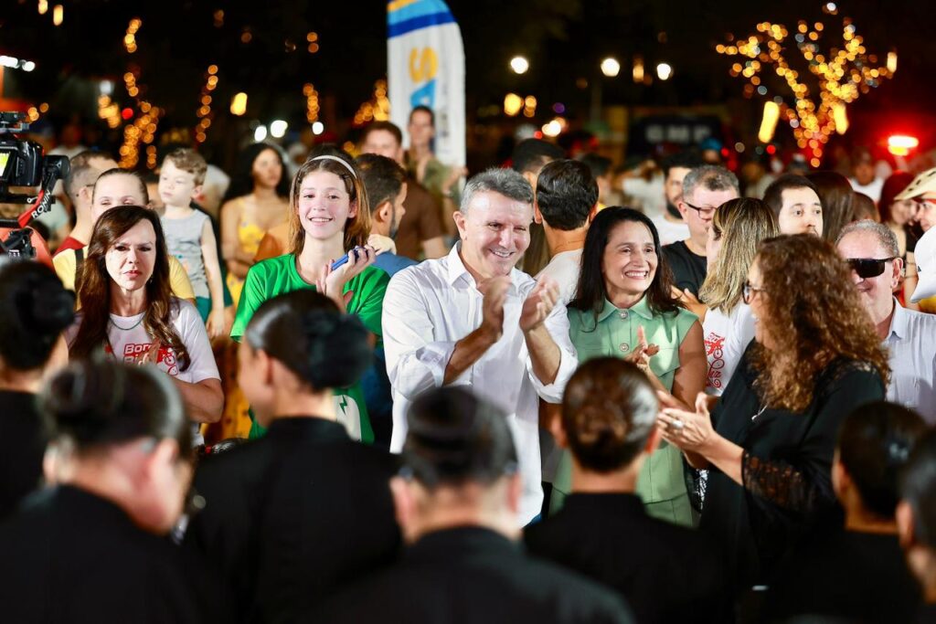 A entrega da chave da cidade ao Papai Noel marcou um dos momentos mais aguardados da noite, emocionando o público que lotou o Bosque dos Pioneiros. No palco, ao lado do prefeito, as crianças realizaram o gesto simbólico da entrega. A programação segue nos próximos dias, com apresentações artísticas, atividades culturais e atrações distribuídas em diversos pontos da cidade.