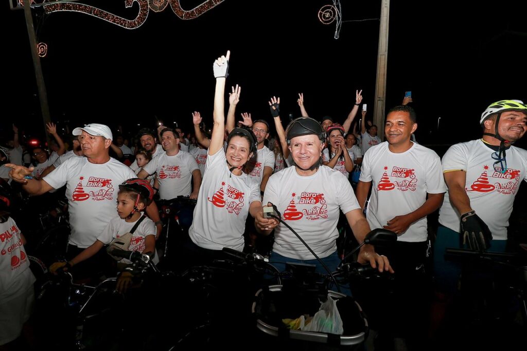 A cidade de Palmas abriu oficialmente, nesta sexta-feira, 5, a programação do Natal Luz 2025. O acendimento das luzes natalinas foi conduzido pelo prefeito Eduardo Siqueira Campos, durante o passeio ciclístico ‘Bora de Bike’. A concentração ocorreu no Memorial Coluna Prestes, na Praça dos Girassóis, reunindo mais de 800 ciclistas, famílias e servidores municipais. De lá, o grupo percorreu aproximadamente 4,3 km até o Bosque dos Pioneiros pela Avenida Siqueira Campos.