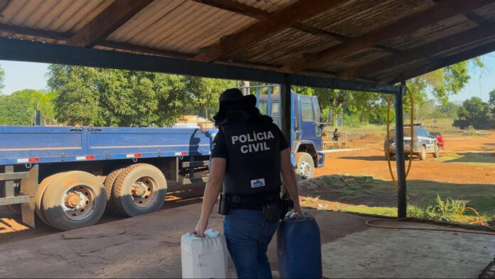 Na mesma operação, os policiais encontraram grande quantidade de combustíveis e agrotóxicos armazenados e comercializados de forma clandestina em uma propriedade. O material estava sob a guarda de um dos investigados.