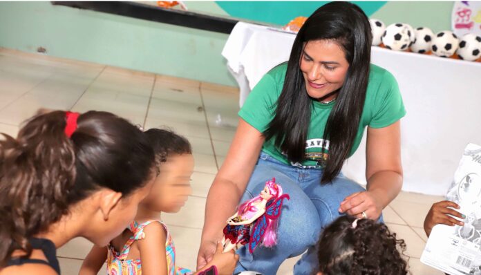 A primeira-dama do Tocantins e secretária extraordinária de Participações Sociais, Karynne Sotero, levou nesta terça-feira, 15, a Caravana da Alegria ao Lar Batista F.F. Soren, localizado em Luzimangues, distrito de Porto Nacional, para celebrar o mês das crianças com muitas brincadeiras e solidariedade. A instituição abriga, atualmente, 13 crianças em situação de vulnerabilidade social e se prepara para receber mais quatro na próxima semana.