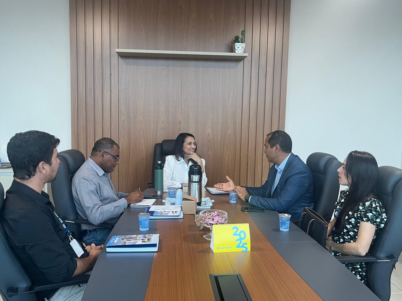 Participaram do encontro o diretor do Sest Senat, Mauro Galvão, o coordenador da unidade, Fabricio Lustosa, e a técnica Flávia Sirqueira. Durante a reunião, Polyanna destacou a importância da colaboração entre o poder público e entidades da sociedade civil para ampliar o impacto das ações sociais.