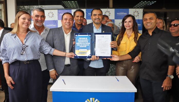 O governador do Tocantins, Wanderlei Barbosa, autorizou na manhã desta sexta-feira, 18, a realização do concurso da Polícia Civil. Serão ofertadas 381 vagas no certame, cujo edital deve ser publicado ainda neste ano, com a previsão da realização das provas e demais etapas ainda no primeiro semestre de 2025. Na solenidade, acompanhado do secretário de Estado da Segurança Pública, Wlademir Mota Oliveira, e de outras autoridades, o chefe do Executivo estadual também efetivou a renovação da frota da Secretaria de Estado da Segurança Pública (SSP/TO) em 210 veículos, que atenderão todos os 139 municípios tocantinenses.