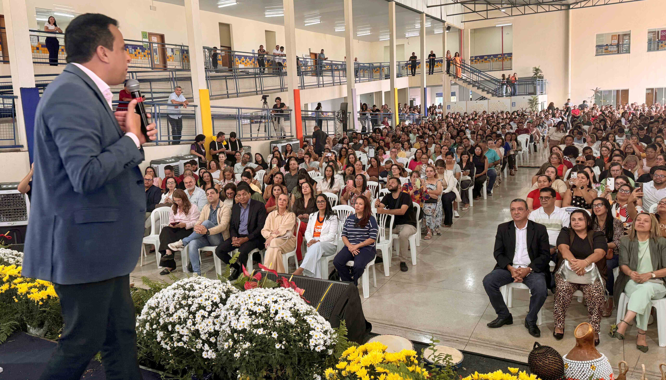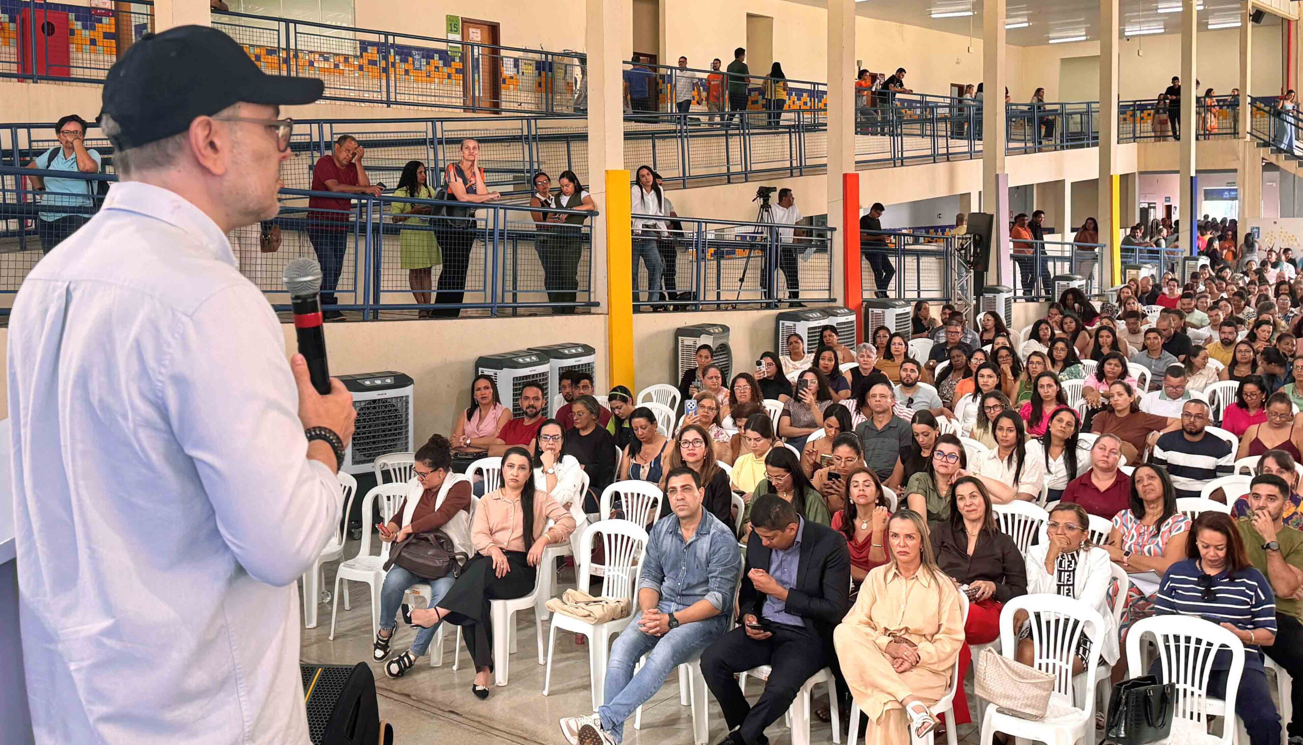 Durante o evento que marca o início da agenda formativa da rede em 2026, o secretário de Estado da Educação, Fábio Vaz, reforçou o compromisso do Governo do Estado com a aprendizagem e a valorização dos profissionais da educação como eixo essencial da política educacional do Estado.