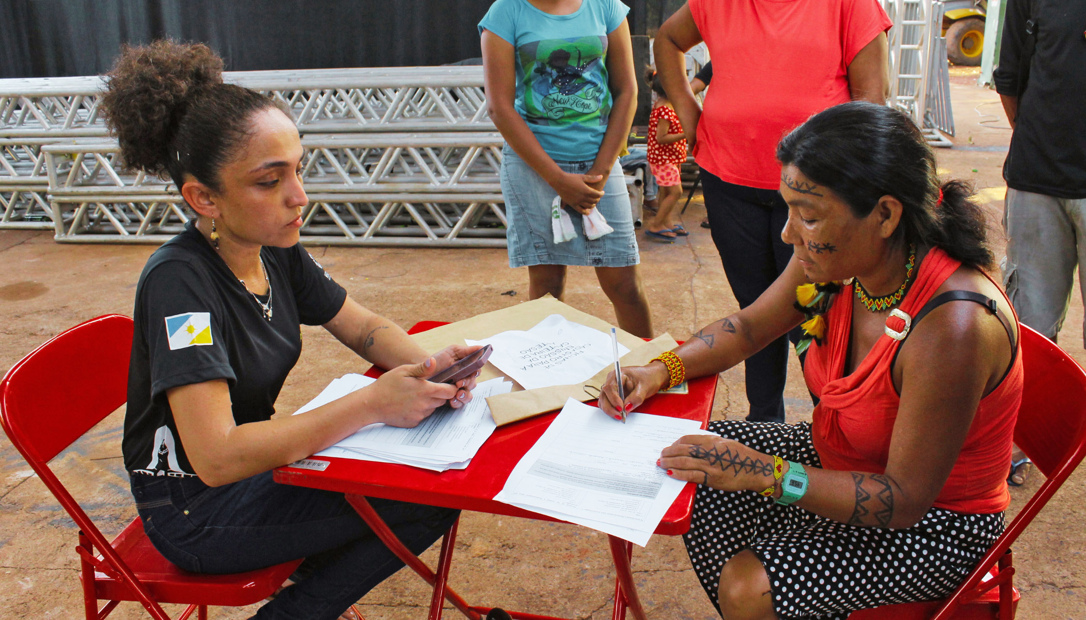 Em Cachoeirinha, a presença dos indígenas da Aldeia Cocalinho marcou o primeiro dia de atividades. O grupo participou das vivências oferecidas pelo projeto, como o uso de óculos de realidade virtual e o acesso à minibiblioteca itinerante, promovendo um intercâmbio simbólico entre saberes tradicionais e inovações tecnológicas.