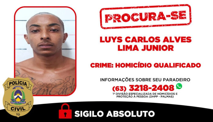 O segundo investigado, Luyz Carlos Alves Lima Júnior, 26 anos, continua foragido. Contra o homem há um mandado de prisão preventiva em aberto, expedido pelo Poder Judiciário da Comarca de Palmas, após representação da Polícia Civil. Informações sobre seu paradeiro podem ser repassadas à 1ª DHPP – Palmas, pelo telefone ou WhatsApp (63) 3218-2408. O sigilo é garantido.