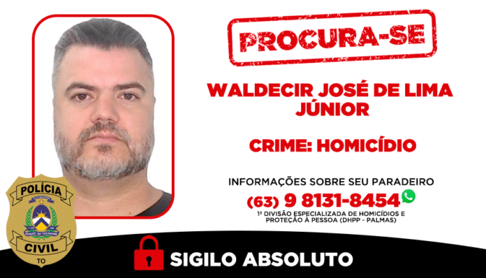A Polícia Civil do Tocantins está à procura de Waldecir José de Lima Júnior, investigado pelo homicídio qualificado que vitimou Dhemis Augusto Santos, de 35 anos. O crime ocorreu no último sábado, 29, no estacionamento de uma galeria localizada na ARSO 21 (203 Sul), em Palmas. O indivíduo possui mandado de prisão em aberto, encontra-se foragido, está armado e apresenta elevado grau de periculosidade. As investigações estão sob responsabilidade da 1ª Divisão de Homicídios e Proteção à Pessoa (1ª DHPP – Palmas).