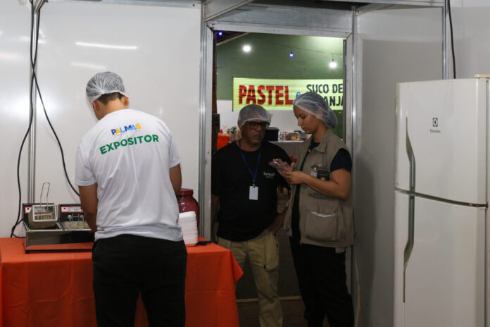 Para garantir a segurança alimentar, a Secretaria Municipal da Saúde de Palmas (Semus) realiza fiscalizações sanitárias durante todo o Festival Gastronômico de Taquaruçu (FGT). Os fiscais da Vigilância Sanitária (Visa) estiveram presentes na abertura do evento, nesta quinta-feira, 4, vistoriando o cumprimento de boas práticas na manipulação de alimentos e condições de higiene adequadas, repassadas em capacitação para os participantes do circuito. Uma ambulância dá suporte em casos de assistência médica e a Unidade de Saúde da Família (USF) Walter Pereira Morato também está disponível para atendimento.